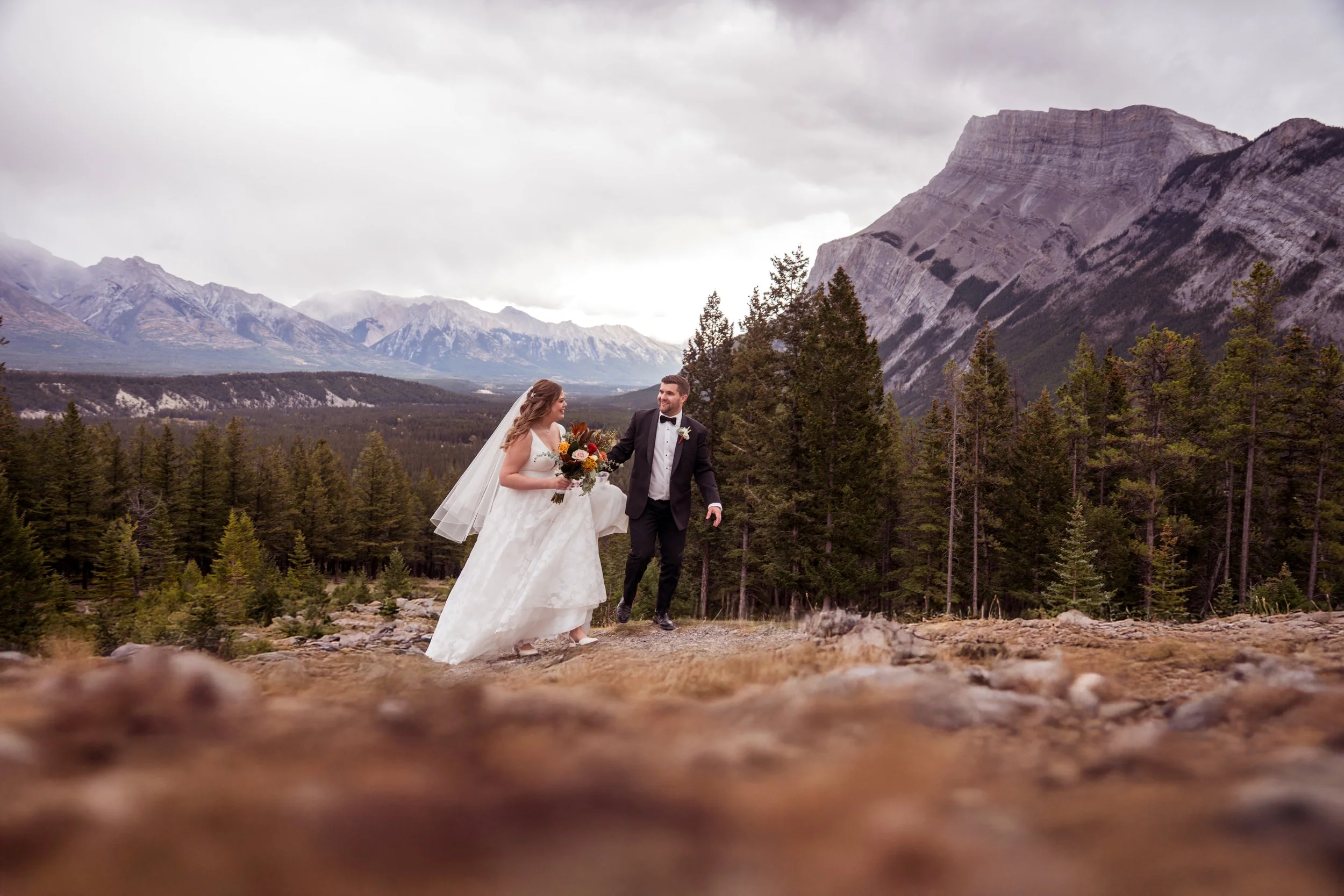 Ryan & Kaeleigh’s late fall wedding at Tunnel Mountain in Banff was a beautiful blend of mountain serenity and timeless celebration. Surrounded by golden autumn tones and sweeping Alberta views, their day was filled with quiet emotional moments, natural portraits, and cinematic storytelling from start to finish.